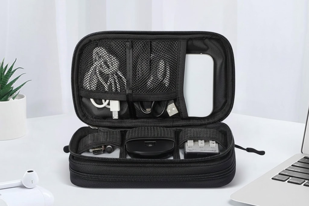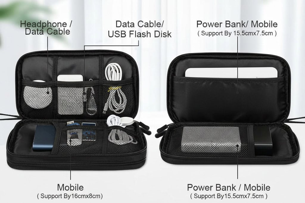 This compact travel organizer is tailored for storing and protecting essential electronic accessories such as charging cables, USB drives, earphones, and power banks—without taking up unnecessary space. It can also accommodate small items like passports, cosmetics, and stationery, making it a highly versatile storage solution.